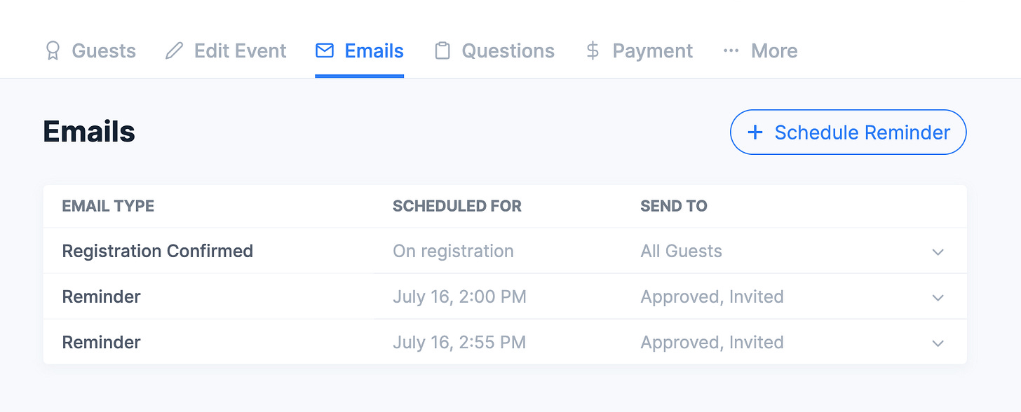 We launched a new tab on the event page that allows hosts to customize emails that go out to their guests.